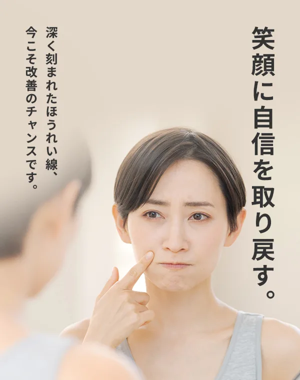 深く刻まれたほうれい線は、このまま放置すれば、さらに固定されてしまいます